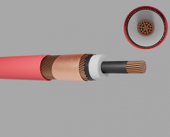 Conductores de cobre electrolítico recocido, cableado, compactado. Compuesto semiconductor extruido sobre el conductor. Aislamiento de polietileno reticulado (XLPE), compuesto semiconductor extruido y cinta o alambres de cobre electrolítico sobre el conductor aislado. Cubierta externa de PVC. Temperatura del conductor de 90°C para operación normal, 130°C para sobrecarga de emergencia y 250°C para condiciones de corto circuito. Excelentes propiedades contra el envejecimiento por calor. Resistencia al impacto y a la abrasión. Resistente a la luz solar, intemperie, humedad, ozono, ácidos, alcalis y otras sustancias químicas a temperaturas normales. Retardante a la llama.